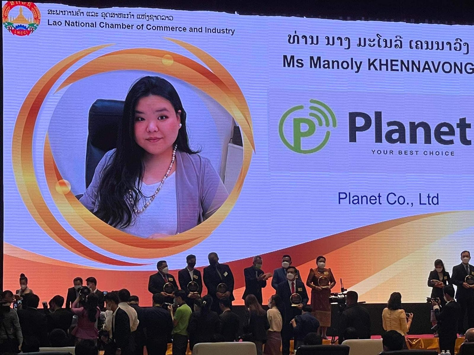 ໃນວັນທີ 29 ທັນວາ 2021 ທີ່ຫໍປະຊຸມແຫ່ງຊາດ ທ່ານ ນາງ ມະໂນລີ ເຄນນາວົງ ອຳນວຍການບໍລິສັດ ພລາເນັດ ຈໍາກັດ ໄດ້ຂຶ້ນຮັບລາງວັນນັກທຸລະກິດຊັ້ນນຳດີເດັ່ນຂອງ ສຄອຊ ໃນໄລຍະໂຄວິດ-19 ປະຈຳປີ 2021 ມອບໂດຍ ທ່ານ ຄຳແພງ ໄຊສົມແພງ ລັດຖະມົນຕີ ກະຊວງອຸດສາຫະກຳ ແລະ ການຄ້າ.
